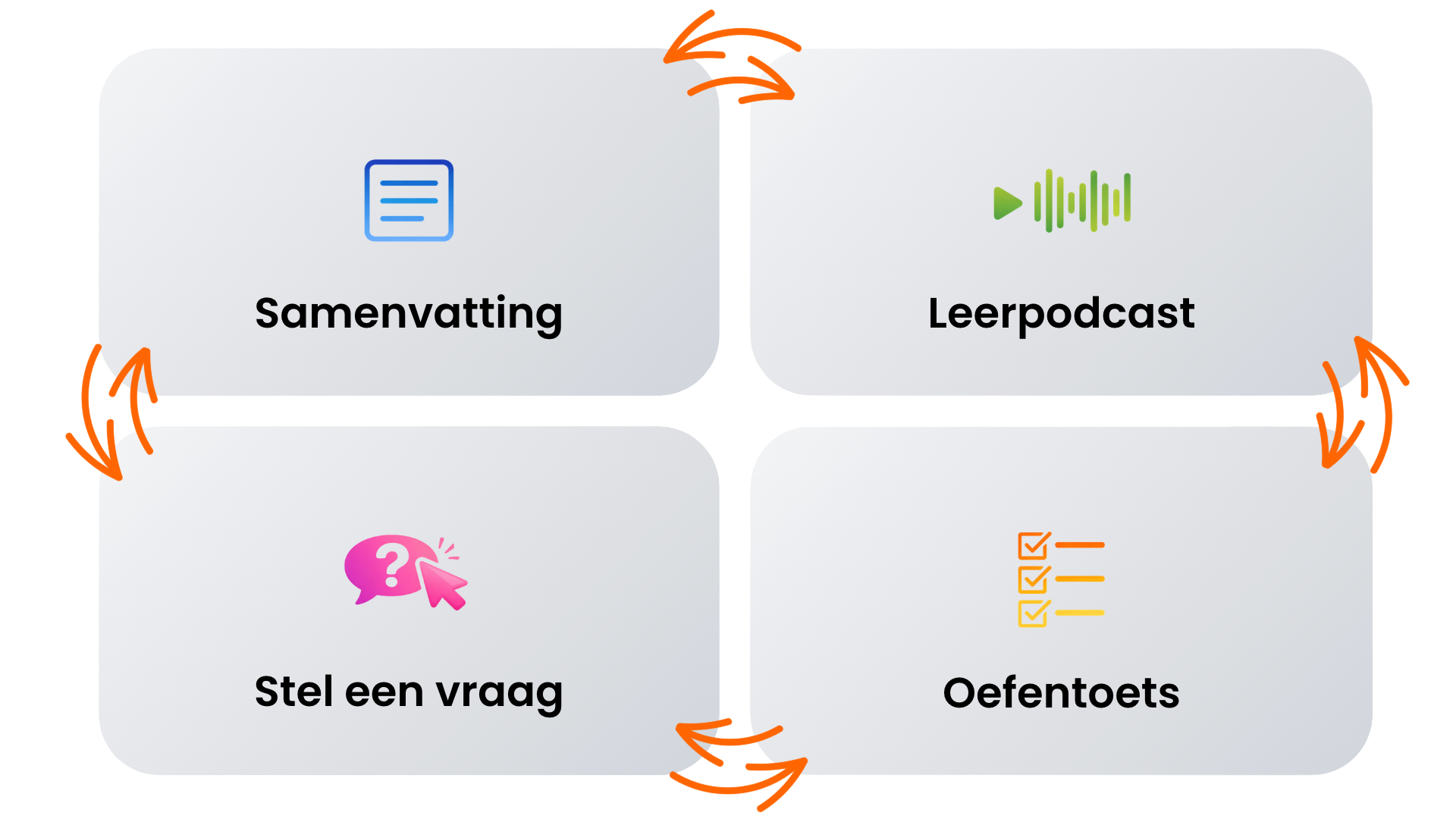 Vat snel je stof samen, stel vragen en test jezelf met toetsen.